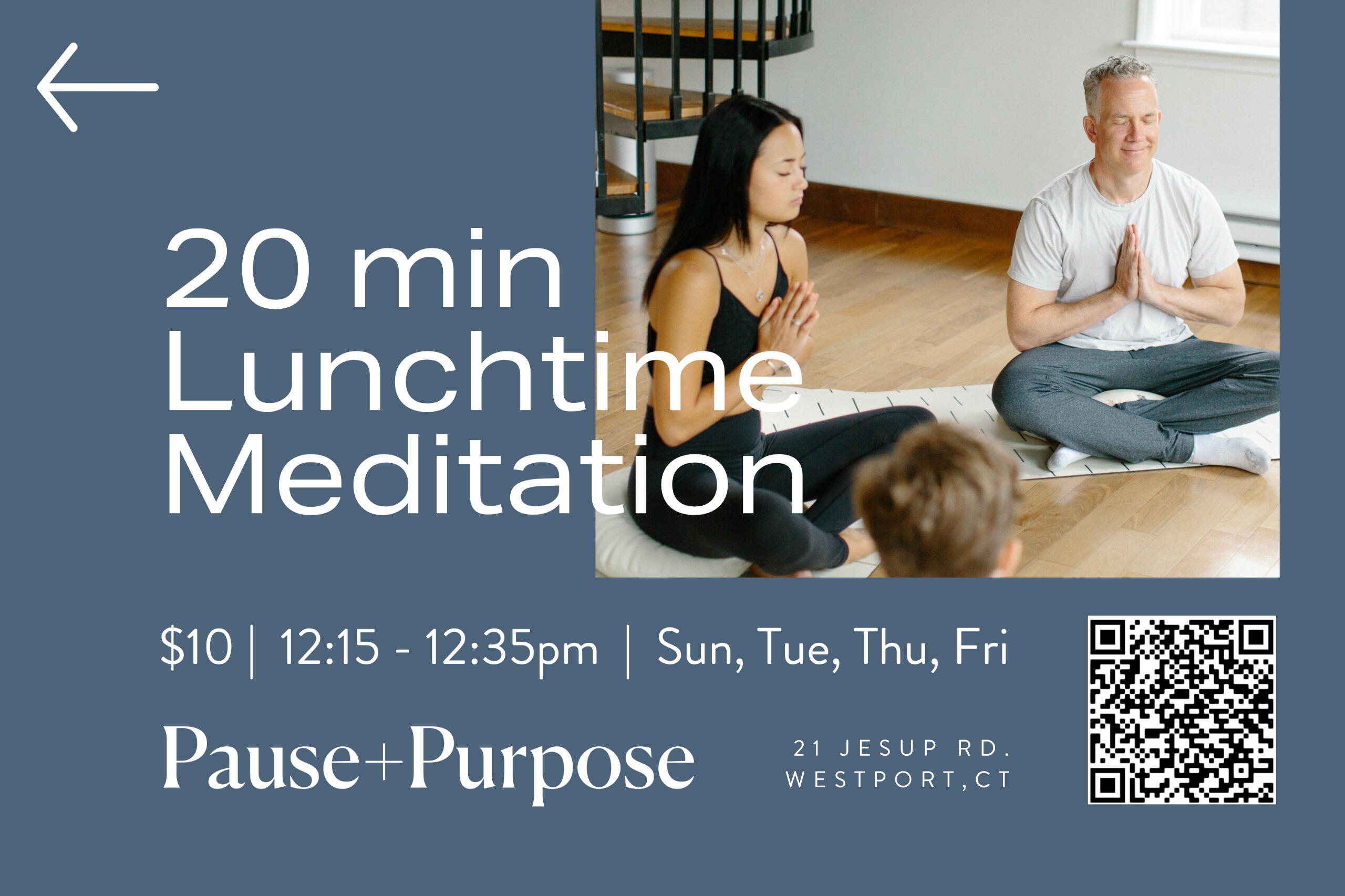 I had the privilege to work for meditation studio, Pause + Purpose, where I co-directed their website design with the founder, Emily Tuttle.My focus was to maintain the branding consistently throughout the entire site, creating visual hierarchy in large bodies of text, and verify that all links were directed to the correct pages.I also designed and created multiple visual assets to be displayed on their website, Instagram, and for print, as seen below.